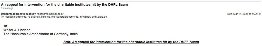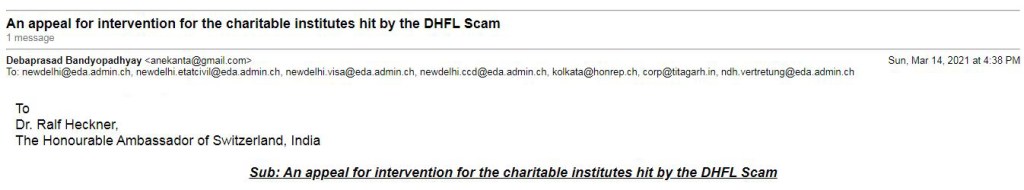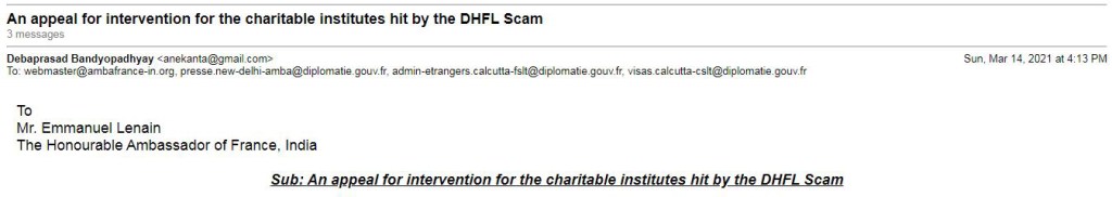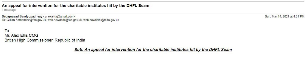 Sub: An appeal for intervention for the charitable institutes hit by the DHFL Scam
