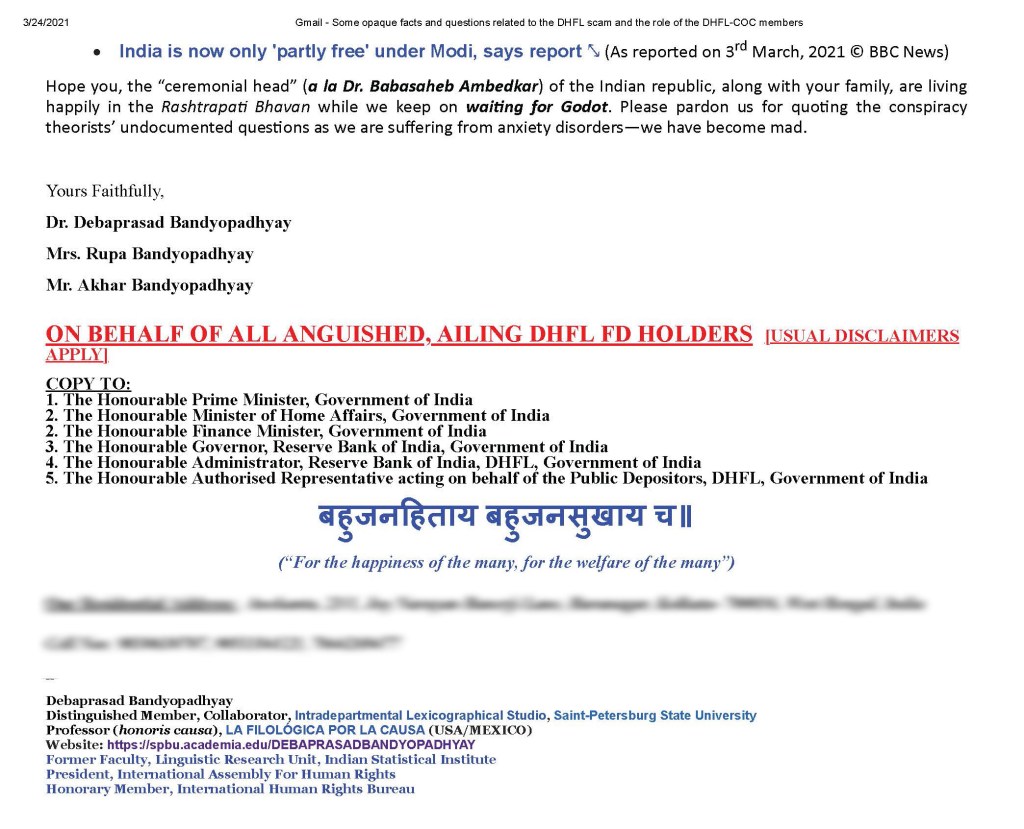 ON BEHALF OF ALL ANGUISHED, AILING DHFL FD HOLDERS [USUAL DISCLAIMERS APPLY]