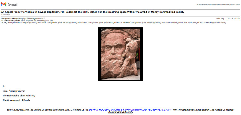 Yet we, the parasitic inhabitants of sick society, the victims of DEWAN HOUSING FINANCE CORPORATION LIMITED (DHFL) SCAM⤡, are struggling, during the pandemic, to write this letter to you, our docile bodies are crippled⤡ and at the verge of collapsing fully as we are suffering from capitalism, the dis-ease of the era, especially because of (cf. Confession Of A Victim Of Financial Abuses VIEW HERE ⤡) the reasons given below. Let us go through each of them in order to sharpen the “weapon of criticism” ⤡ by performing the concrete analysis of the existing material conditions (as prescribed by Com. Sitaram Yechury in his book Left Hand Drive: Concrete Analysis of Concrete Conditions⤡):