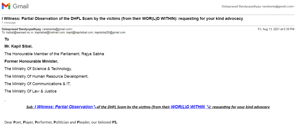 Sub: I Witness: Partial Observation⤡ of the DHFL Scam by the victims (from their WOR(L)D WITHIN ⤡): requesting for your kind advocacy