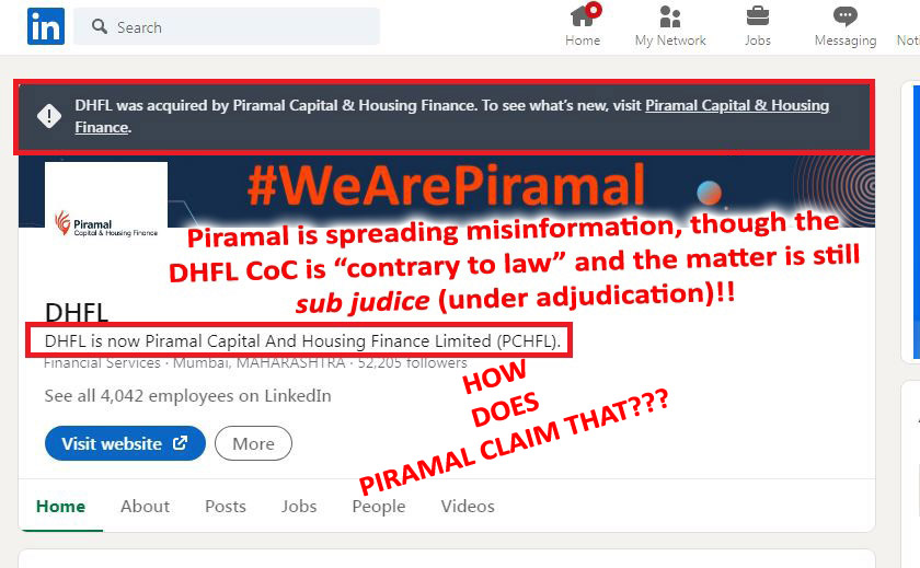 4. The Piramal Enterprises ceased all their social media activities claiming ownership of the DHFL.