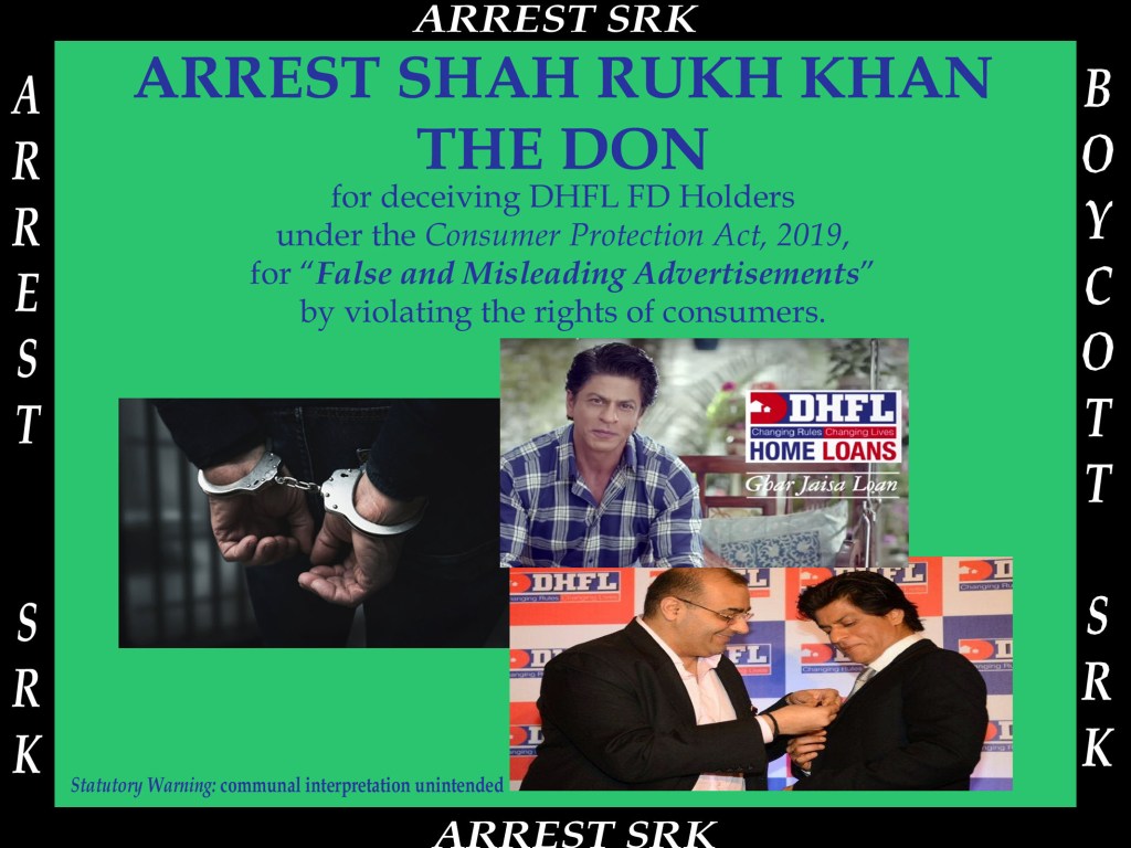SUB: MR. SHAH RUKH KHAN, THE BRAND AMBASSADOR OF THE DEWAN HOUSING FINANCE CORPORATION LIMITED (DHFL), HAS DECEIVED THE VICTIMS OF THE DHFL SCAM