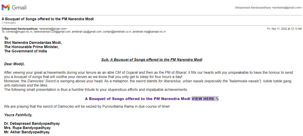 We, the citizens of India, are offering the following bouquet of songs to the exceedingly Honourable PM Narendra Modi and the moral exemplar Home Minister Amit Shah to reiterate the memory of svadesi movement in the context of a regime of terror. All these songs have been composed by those liberandus, who might be called as urban naxals, anti-nationals, tukde tukde gang etc.