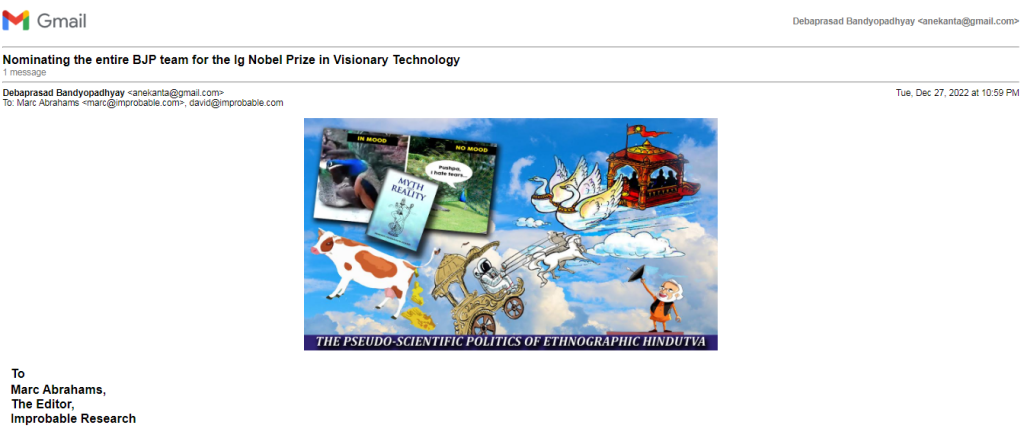 Sub: Nominating the entire BJP team for the Ig Nobel Prize in Visionary Technology