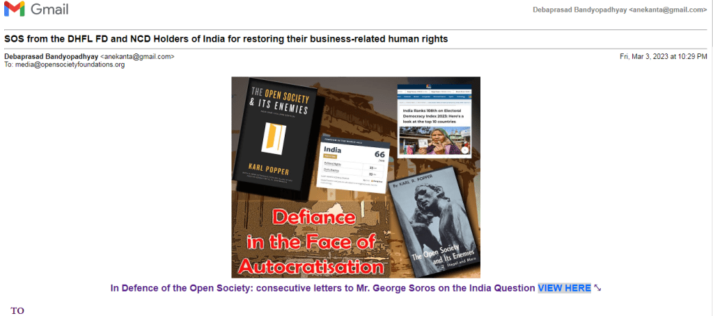 If you please take into your kind consideration this bigger scam (the biggest scam being the recently revealed Adani Group scam), i.e., the Dewan Housing Finance Corporation Limited (DHFL) Scam, more than 0.1 million FD and NCD Holders (including ailing senior citizens, physically challenged persons, widows of retired army personnel) would forever be obliged to you. We are well-aware of your contribution towards preserving and upholding the core democratic ethos throughout the world across decades. The DHFL scam is the result of crony capitalist favouritism by the ruling party, viz., the Bharatiya Janata Party (BJP), which is necessarily a religious extremist group that strives to create (as you know quite well) a mono-religious nation-state, following the footsteps of Nazi ideology.