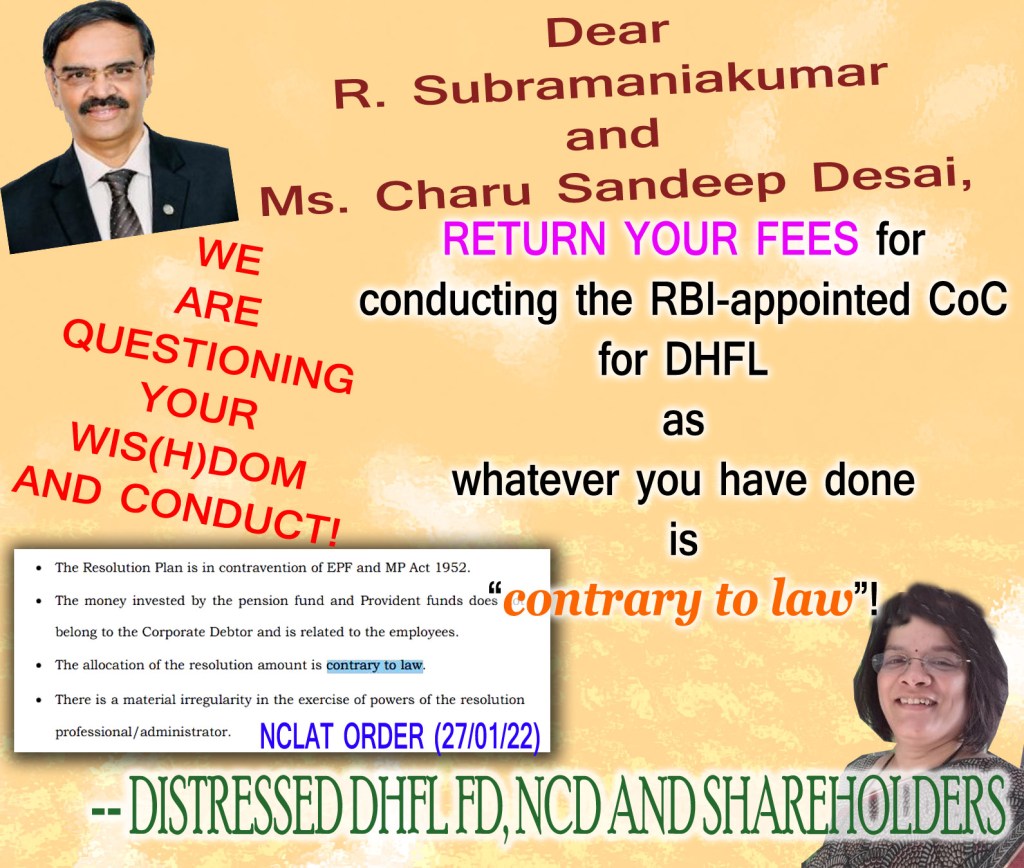 b) The various material irregularities/illegalities in the resolution process under the RBI-appointed Committee of Creditors (CoC) for DHFL as pointed out in the NCLAT’s second order on 27/01/2022.