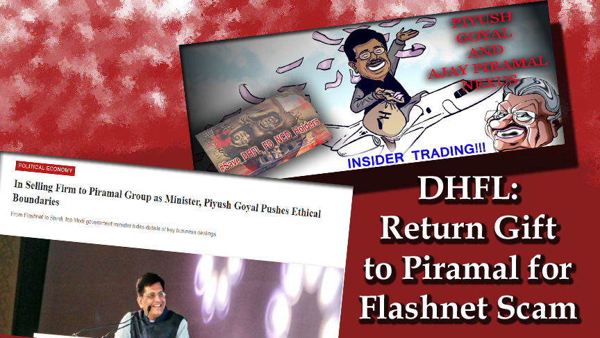 The article “DHFL: Return Gift by BJP to Piramal for Flashnet Scam” explores allegations of a financial scandal involving Ajay Piramal and the Bharatiya Janata Party (BJP). It claims that Piramal acquired Dewan Housing Finance Corporation (DHFL) as a favor from the BJP, linked to the Flashnet Scam, where Piramal allegedly purchased a company owned by BJP Minister Piyush Goyal at an inflated value of 1000 times its face value. The piece suggests this acquisition was a quid pro quo arrangement, facilitated by political collusion, and highlights the lack of defamation lawsuits against related reports by The Wire. It also references a Cobrapost report alleging a nexus between DHFL, RKW Developers, the BJP, and the Dawood Ibrahim-Iqbal Mirchi gang, pointing to systemic corruption and financial abuse affecting DHFL victims.