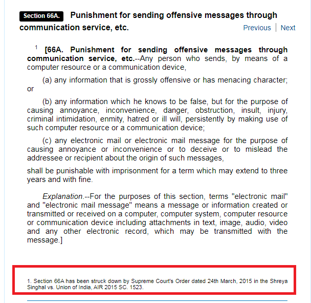 No citizens to be prosecuted under Section 66A IT Act: SC VIEW HERE ⤡ (As reported on Oct 12, 2022 ©The Economic Times)