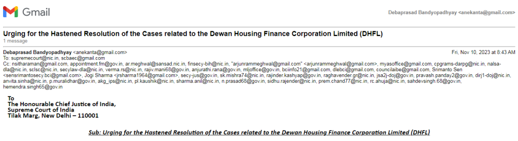 Sub: Urging for the Hastened Resolution of the Cases related to the Dewan Housing Finance Corporation Limited (DHFL)