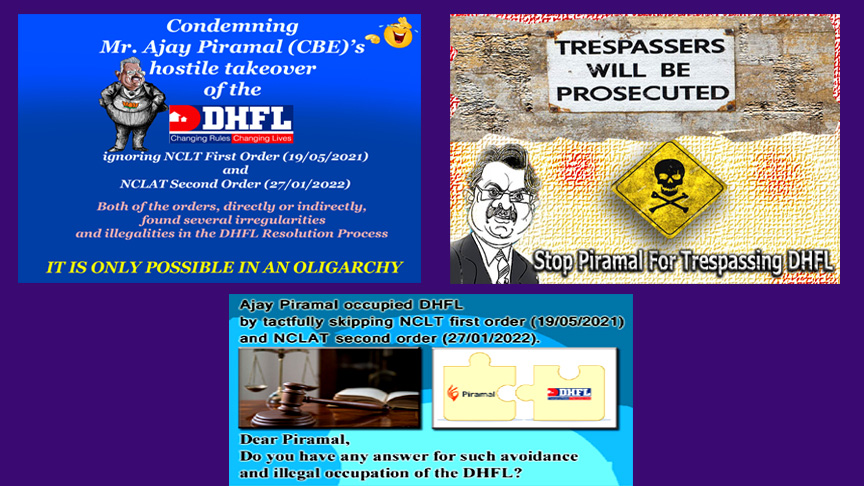 It proves that the case of Mr. Piramal’s occupation of DHFL is still sub judice or under adjudication. At this moment, he cannot claim ownership of the company.