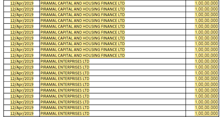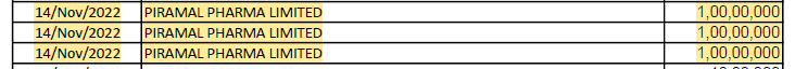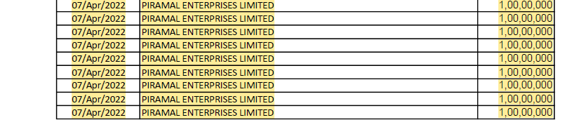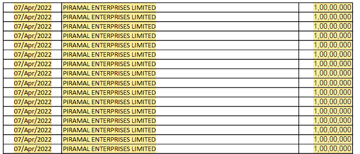 Piramal Enterprises- 35 crores (10 crores on 12th April, 2019 + 25 crores on 7th April, 2022)