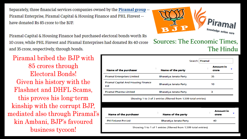 Moreover, the previous issue of terror-funding the BJP with regard to the DHFL scam (before DHFL was forcibly handed over to Mr. Piramal in terms of an alleged/possible adverse possession) can also be found as follows: