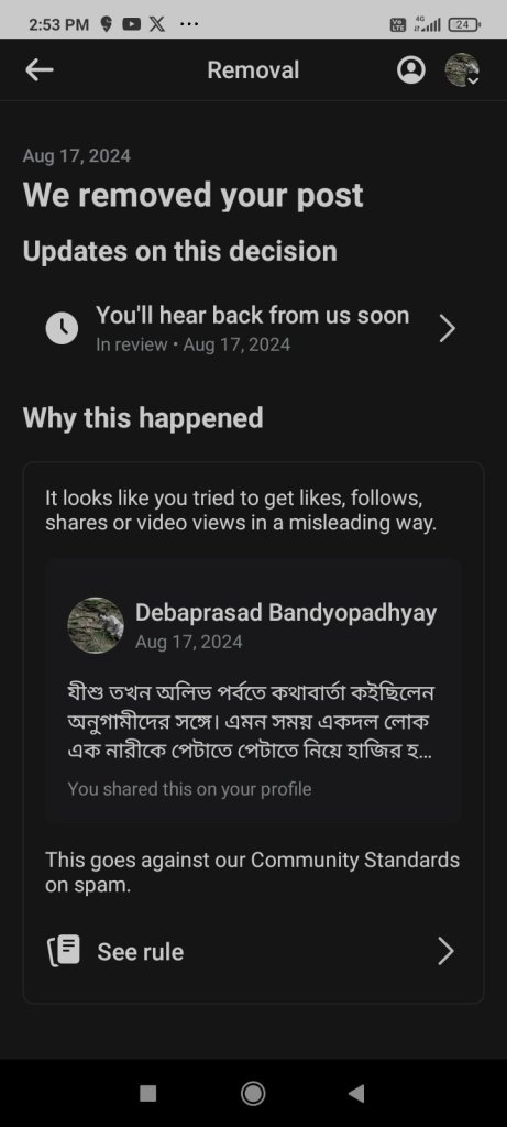 (এই বয়ানগুলো ফেসবুক থেকে জড়ো করা। এ সবই ফেসবুক অজানা কারণে উড়িয়ে দিয়েছে, নিষিদ্ধ করে দিয়েছে। )
