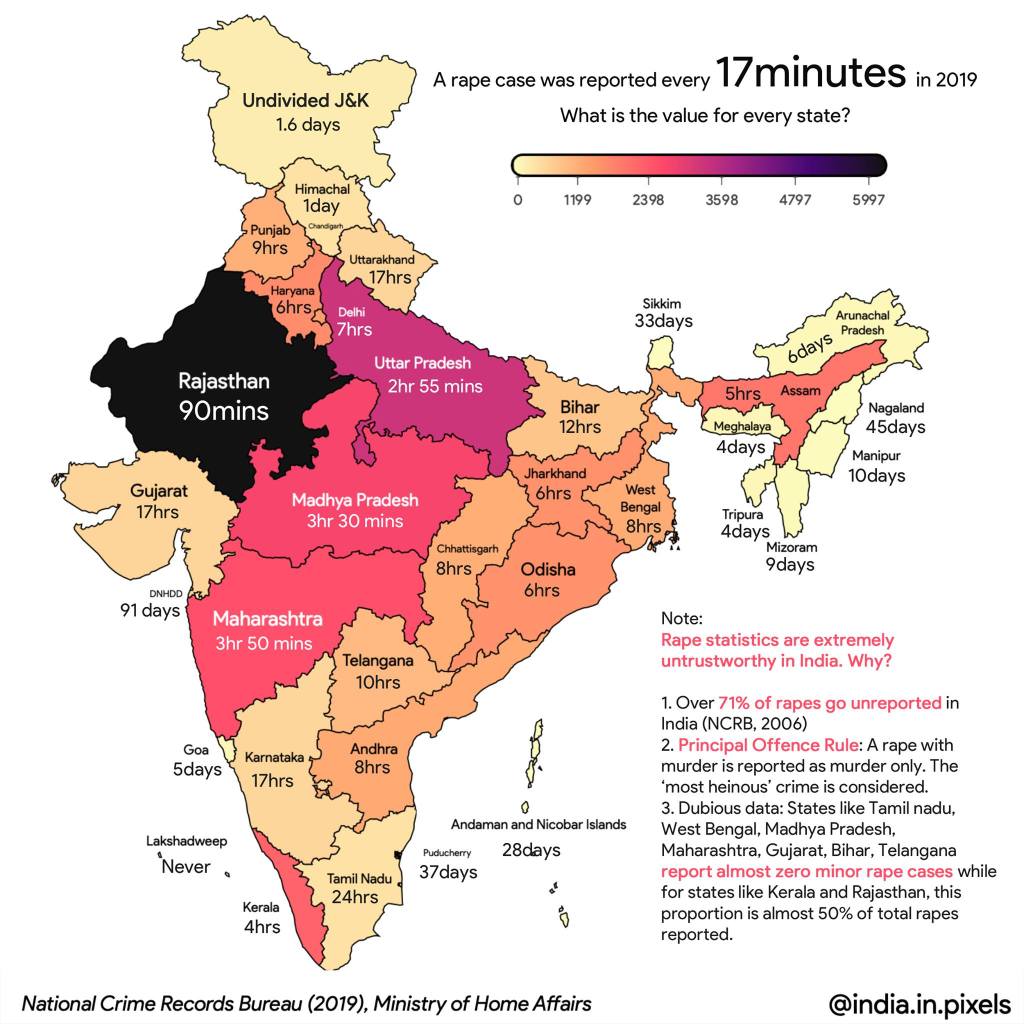 Moreover, note that many a times FIRs are not registered for rape cases in India⤡. In the cases of many evident rape-and-murder cases, only the “murder”-part is pointed out in the official reports by carrying out the juri-terminological deletion of “rape” as such.