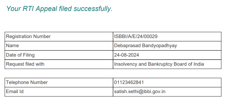 Immediately after posting this article, we received an email from the IBBI on 23/08/2024, suggesting a reply to our RTI application. Witness the strength of online movement!