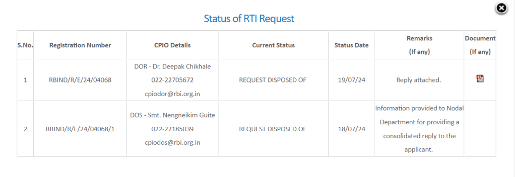 The RBI also shows another previous consolidated reply from 19/07/2024, also saying that it has no information to give in response to our relevant queries!