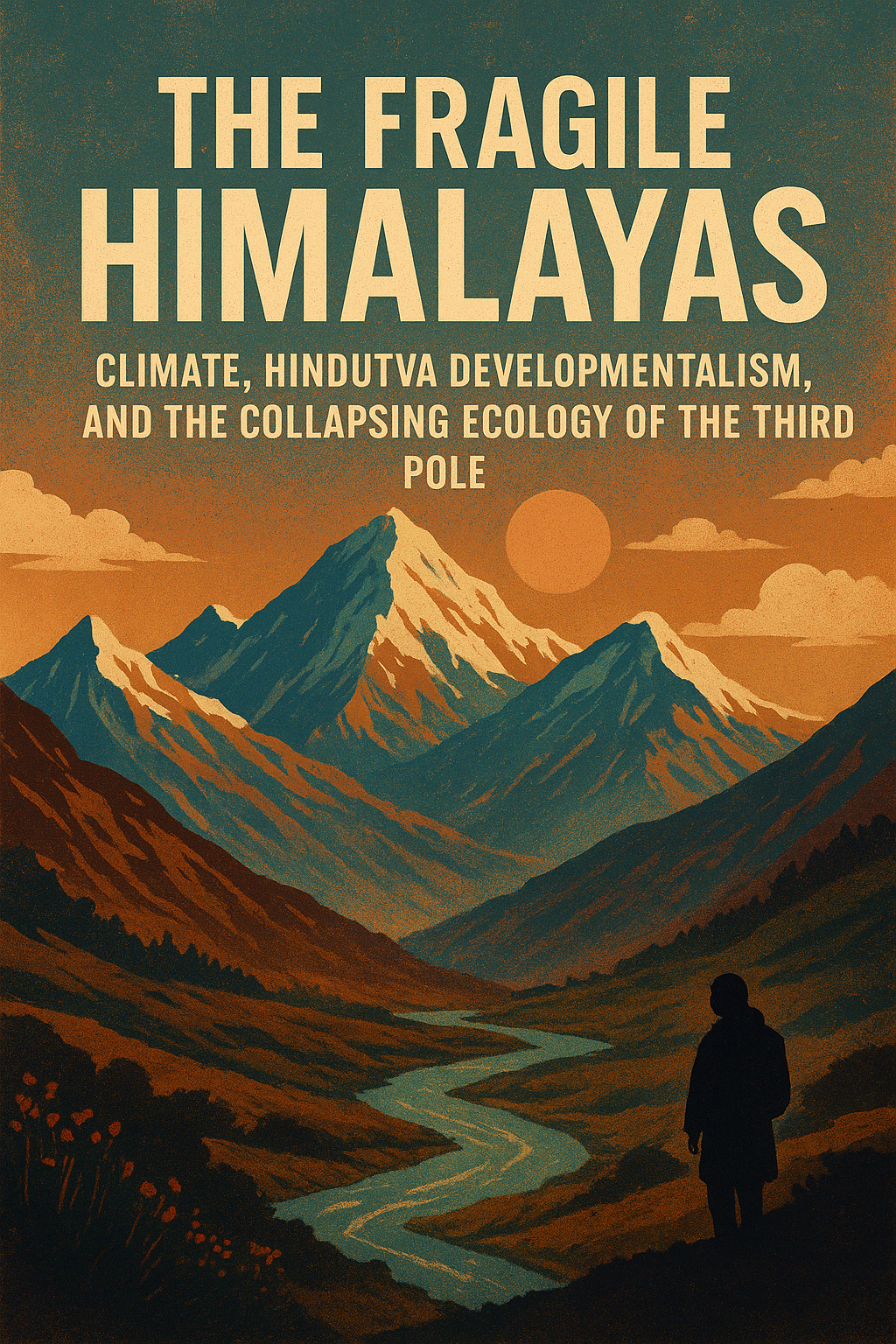 The Himalayas—often called the “Third Pole”—are collapsing under the dual weight of climate change and a reckless developmental paradigm driven by Hindutva nationalism. This article examines how the BJP’s infrastructural expansion, exemplified by the Char Dham project and many other recent instances, embodies an extractive model that desecrates the sacred mountain ecology in the name of “spiritual connectivity” and national pride. By exposing the contradictions between ecological fragility and politico-economic hubris, it argues that the Himalayan crisis is not a natural disaster but a moral and civilizational collapse—where faith has been mechanized, rivers commodified, and glaciers sacrificed for profit and propaganda. Drawing on ecological ethics, political ecology, and environmental sociology, the piece calls for an epistemic and ethical reorientation—from GDP-centrism to earth-centric governance that recognizes the Himalayas as living systems rather than geological resources. Ultimately, saving the Himalayas demands confronting not only climate change but also the ideological machinery that normalizes ecocide under the rhetoric of development.
