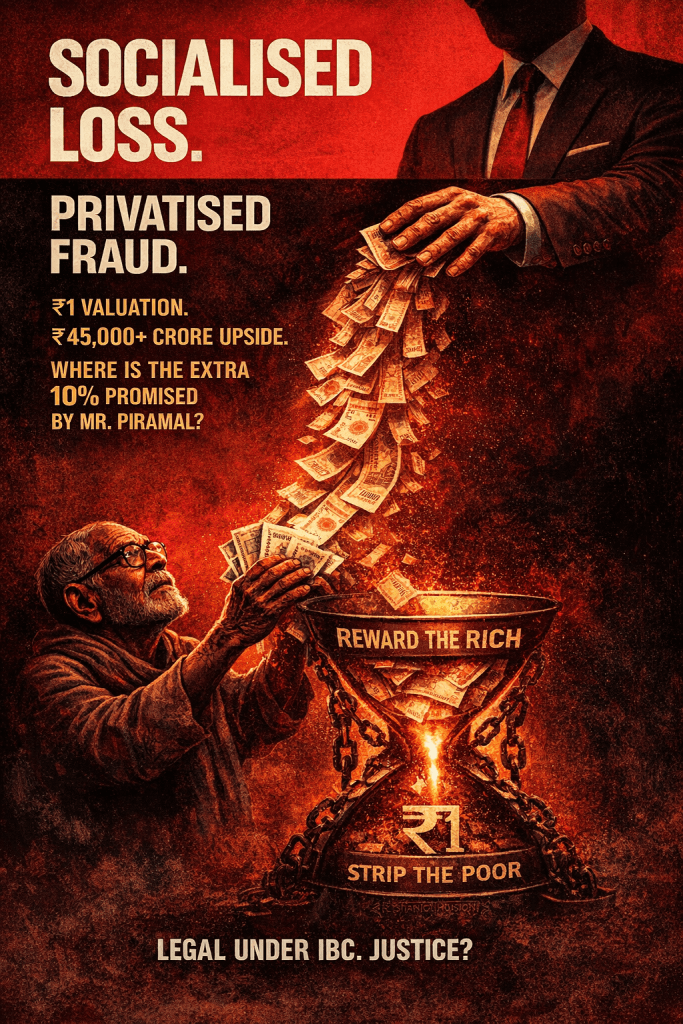 This is crony capitalism 2.0: not crude licence-permit raj, but a sophisticated electoral-autocratic insolvency regime where proximity to political power translates into preferential access to distressed public assets at fire-sale (or even sub-fire-sale) valuations, insulated by statutory immunity.