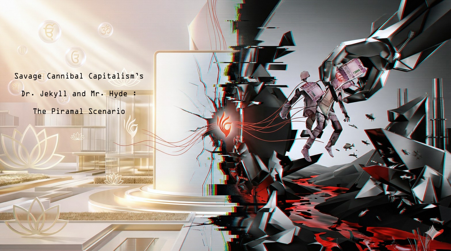 This article offers a structural critique, not a personal indictment. Through Marxist, anarcho-syndicalist, and Orwellian lenses, it examines how savage cannibal capitalism operates: extracting surplus value (the labour and life-force of the exploited) while narrating it as profit and “inclusive progress.” It explores the Glitch Art aesthetic of the system — crashing realities for the vulnerable hidden behind smoothly resolving philanthropic visions. In the end, the Piramal paradox is not about one individual’s sincerity or failings. It reveals the much deeper schizophrenic condition of contemporary capitalism itself: a machine that must continually recode, appropriate and approximate ethical language to sustain its cannibal logic of accumulation.